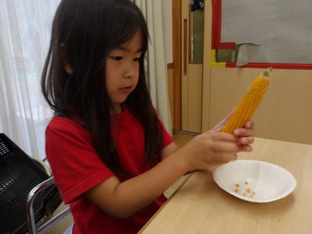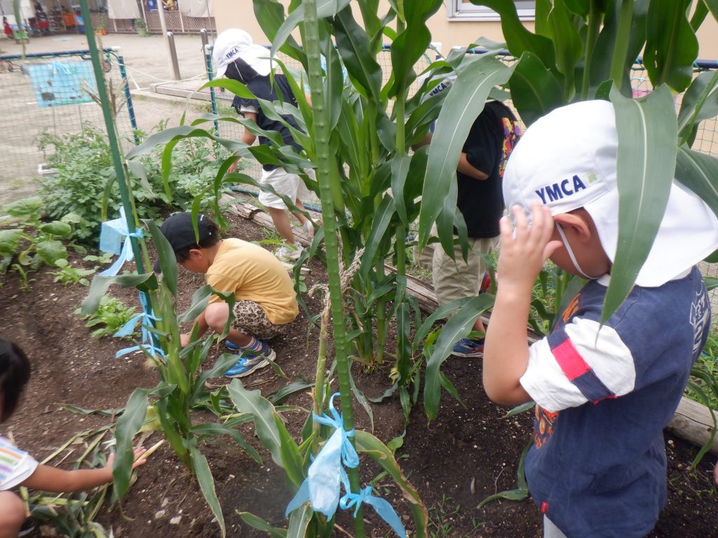 今年は幼児部が畑でポップコーンを育てました。