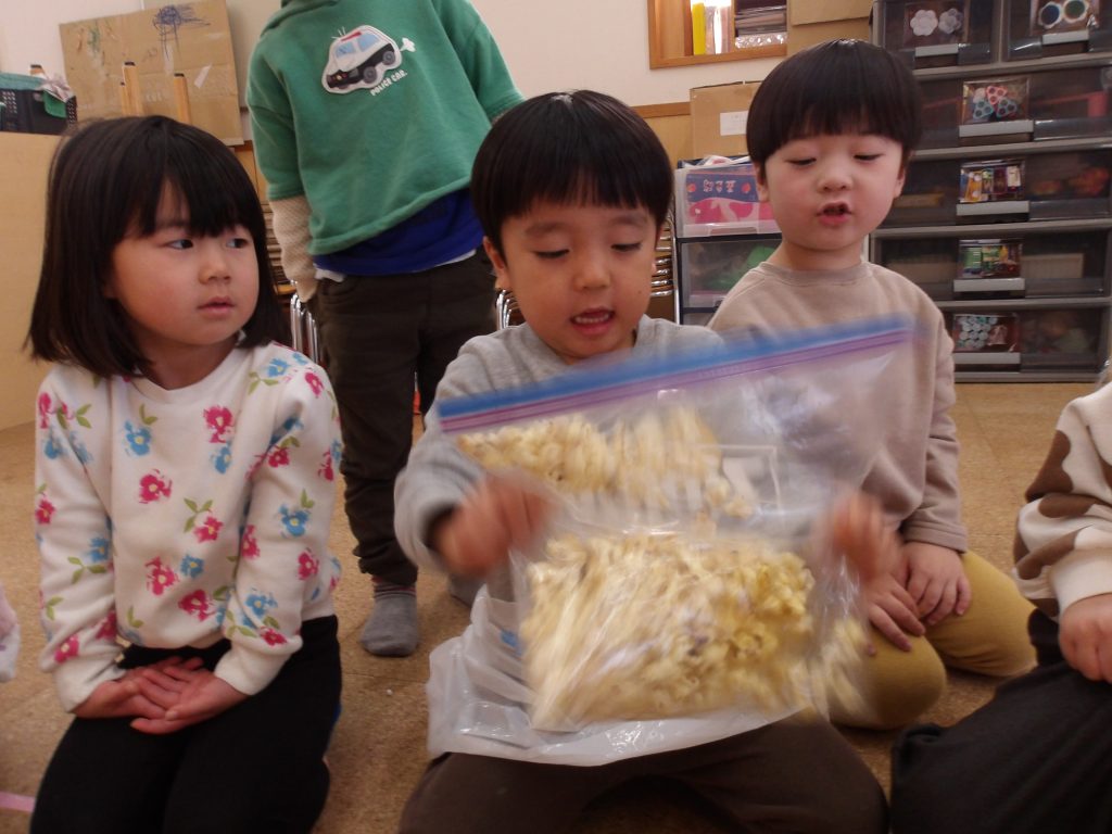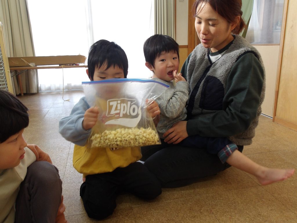 「おいしい!」「ポップコーンだ!」と大喜びで食べてくれました。