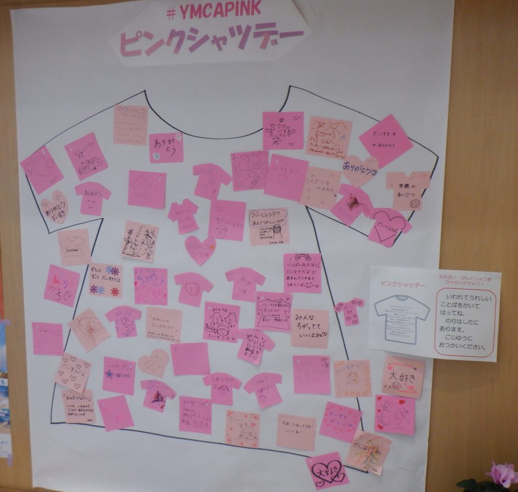 当日は、ホールに集まり、ピンクシャツデーのお話を聞きました👚