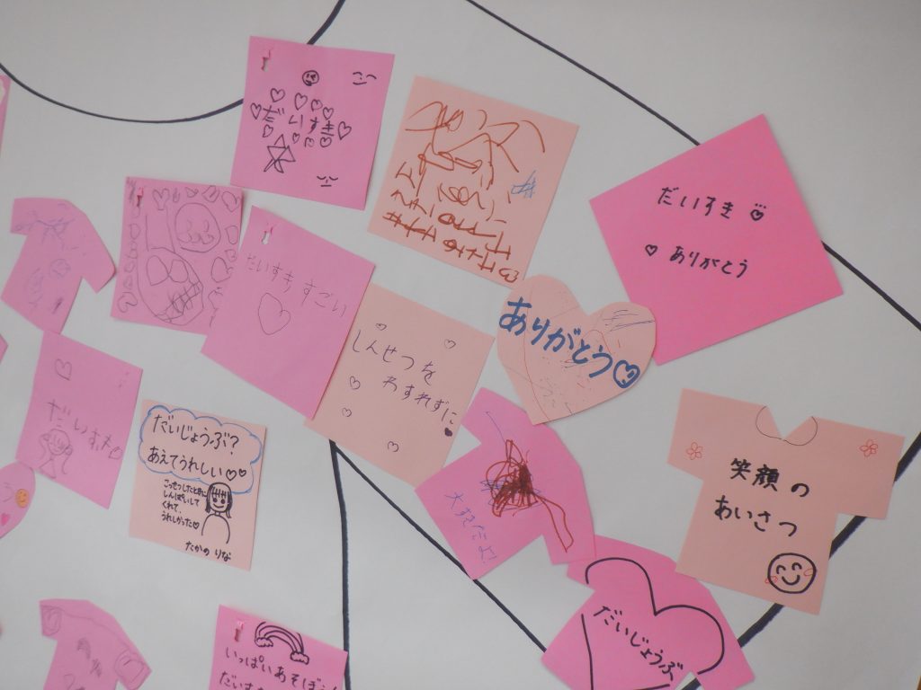 加茂こども園では独自の活動として、「言われて嬉しい言葉」をピンクの紙に書いて、自由に貼ってもらいました💕