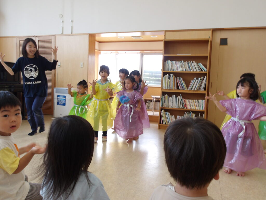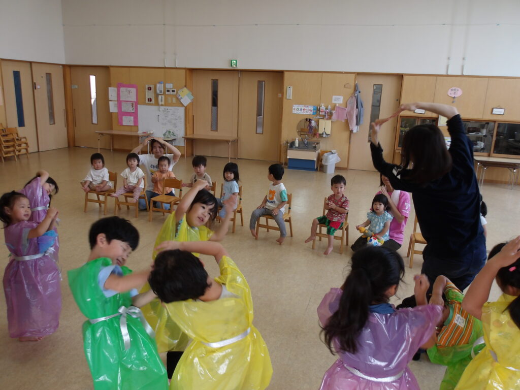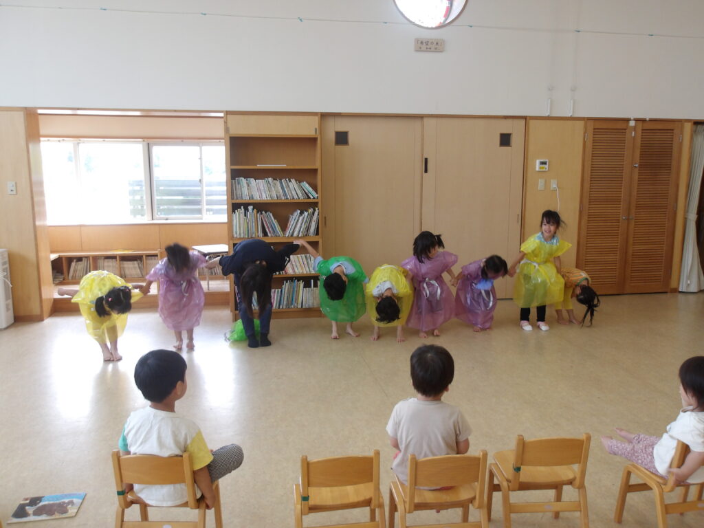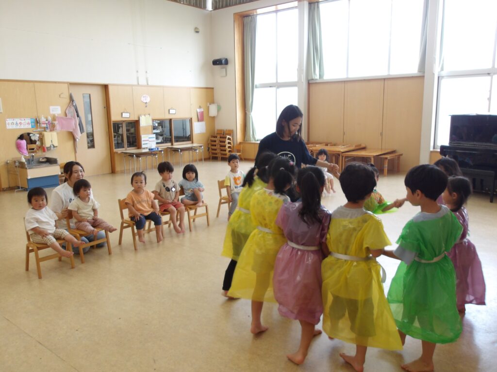 乳児部の子どもたちが見守る中、少し緊張しながらも、笑顔で踊ります♪