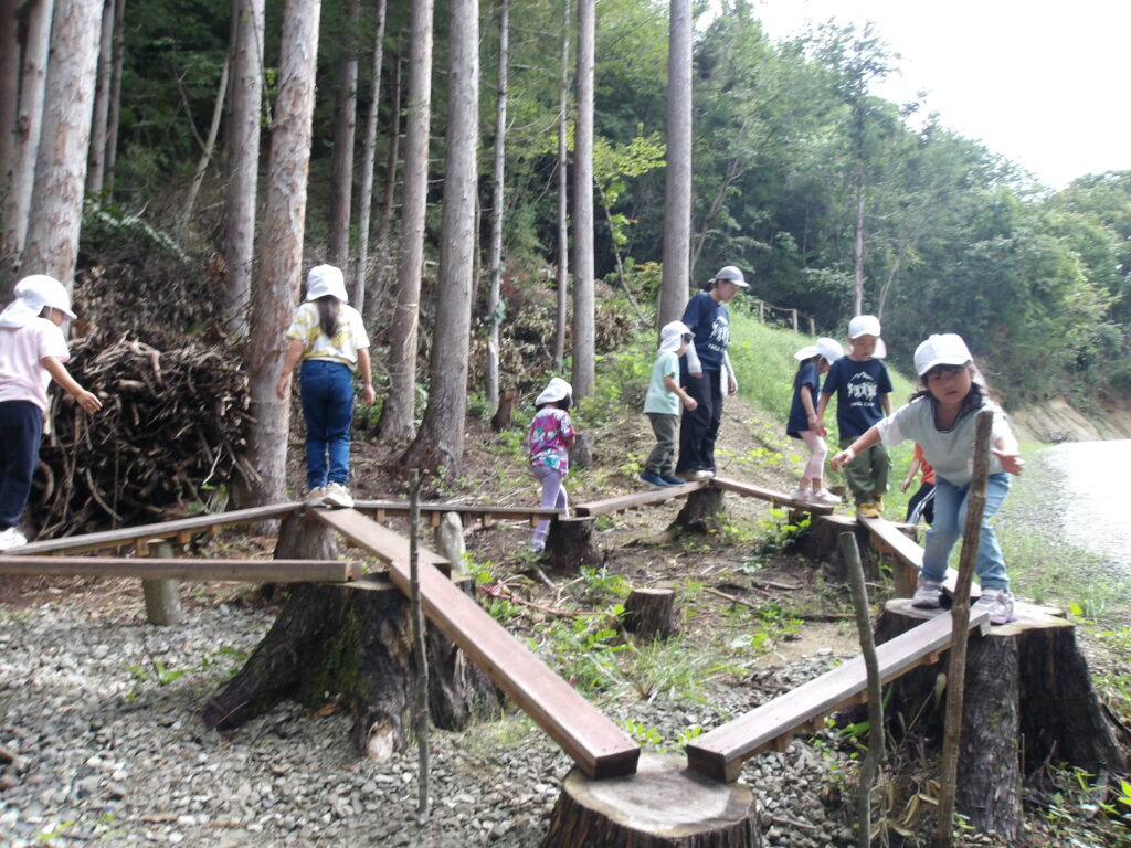 遊び始めると、いたるところにある一本橋に挑戦する子どもたち。