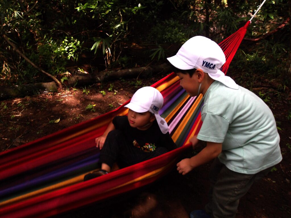 ハンモックにも乗ってみたよ!バランスをとらないとうまく乗れません。