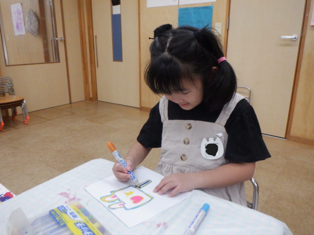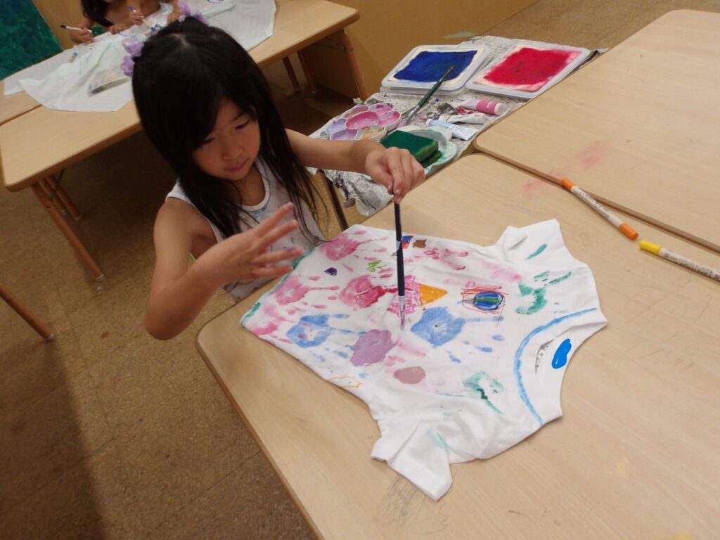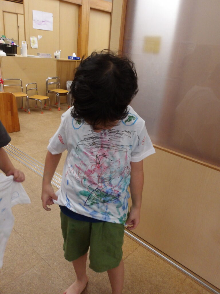 手形や布用マーカーで絵を描いてオリジナルTシャツを作りました。