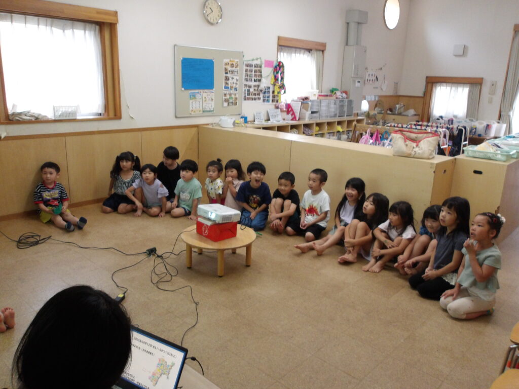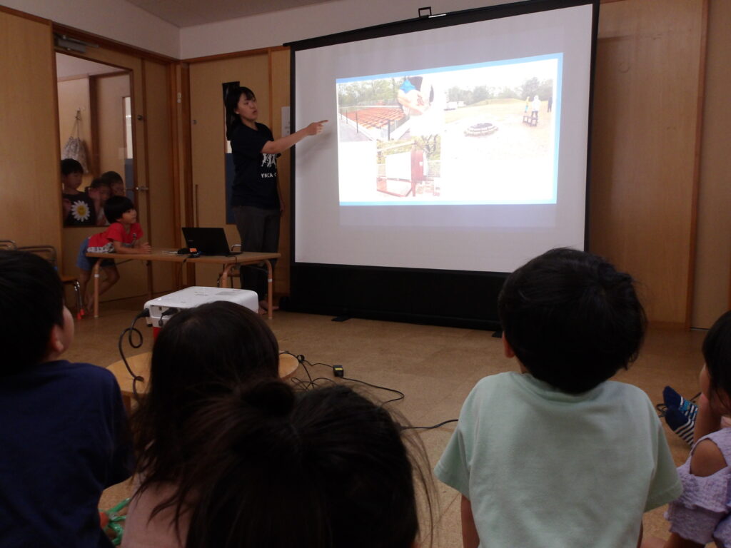 8月上旬には子どもたち向けに説明会を行いました。行く場所の写真を見せたり引率の職員などを知らせました。興味津々に聞く、ひかり組の子どもたちの横で、年下の子どもたちも気になる様子で覗いています👀✨