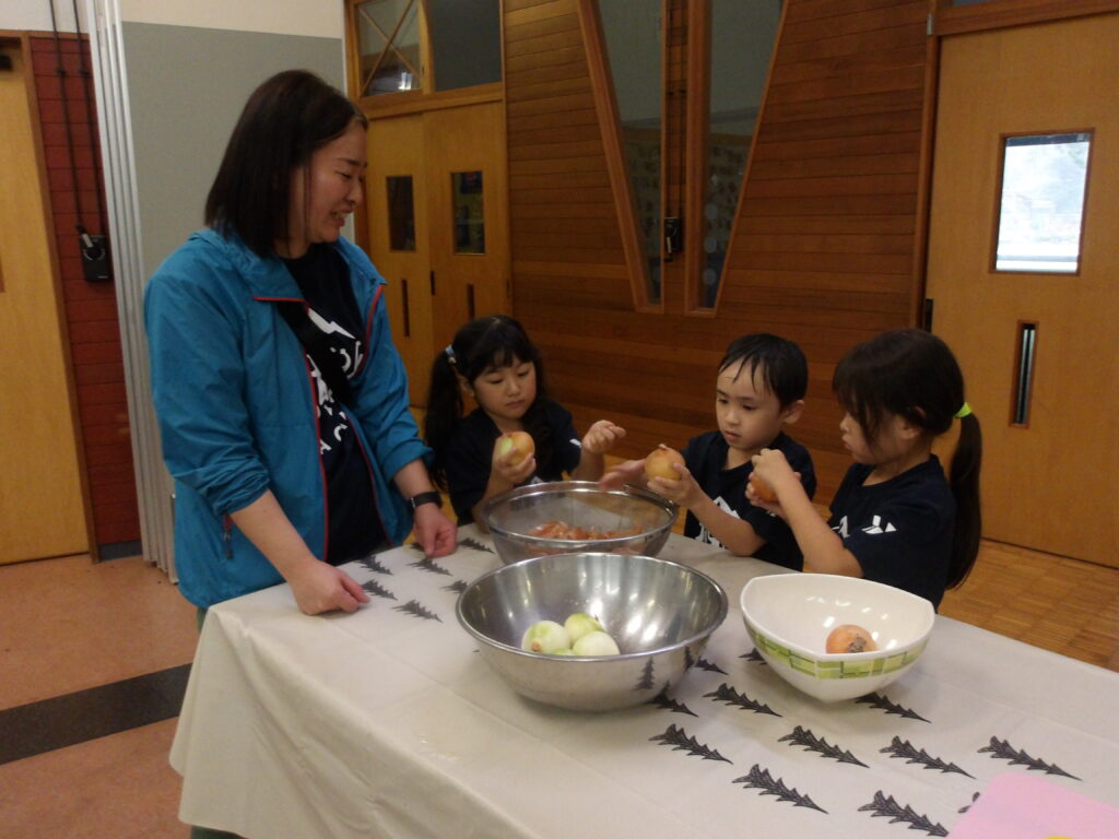 玉ねぎの皮をむいたり、カレーのルーを割るお手伝いをしてくれました。