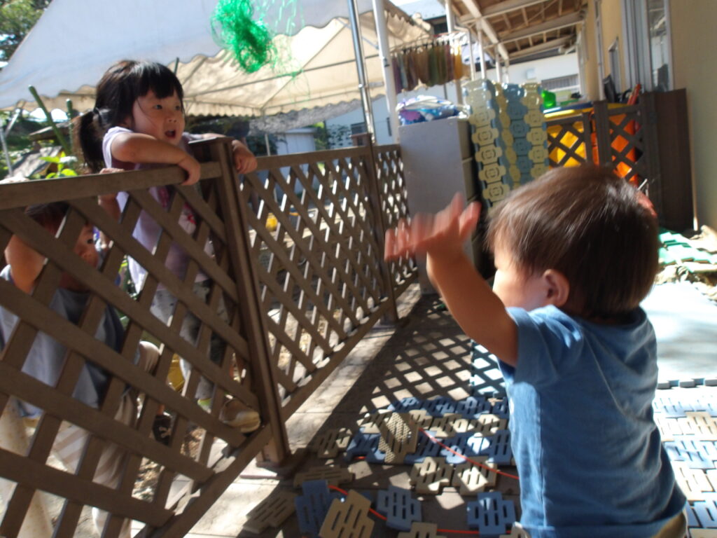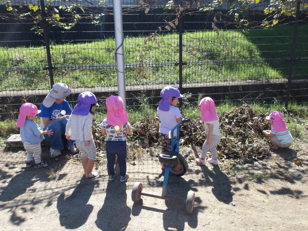 涼しくなってきたので、0・1・2歳児の子どもたちも園庭やテラスで心と体を存分に動かしながら遊んでいます🍂