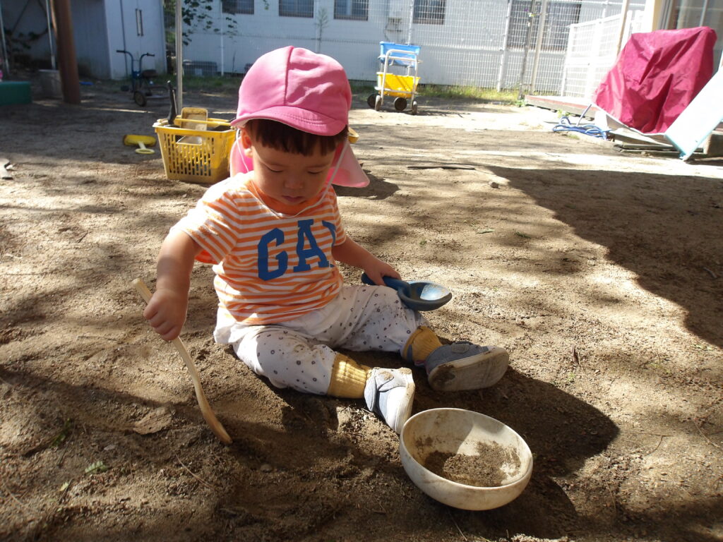 砂遊びでは、どのような道具を使うと砂がすくえるかを考えながら遊んでいます⭐
