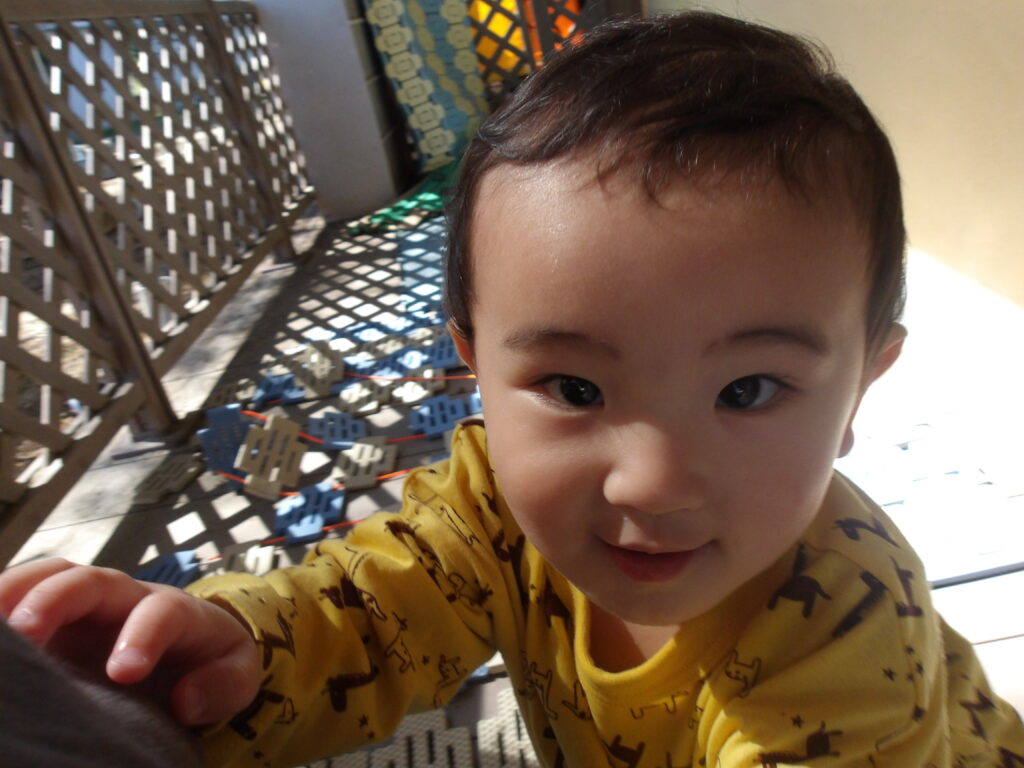 0歳児の友だちが遊んでいたテラスを覗いて…😄