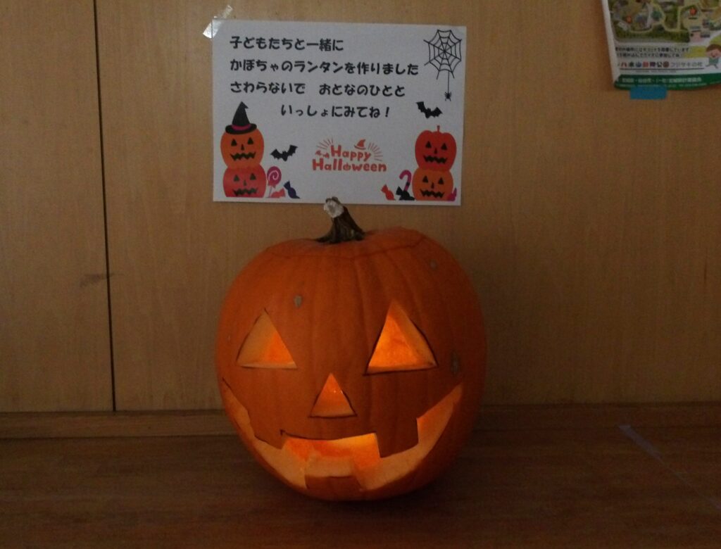 お花屋さんからカボチャをいただいたので、10月31日にランタン作りをしました😄