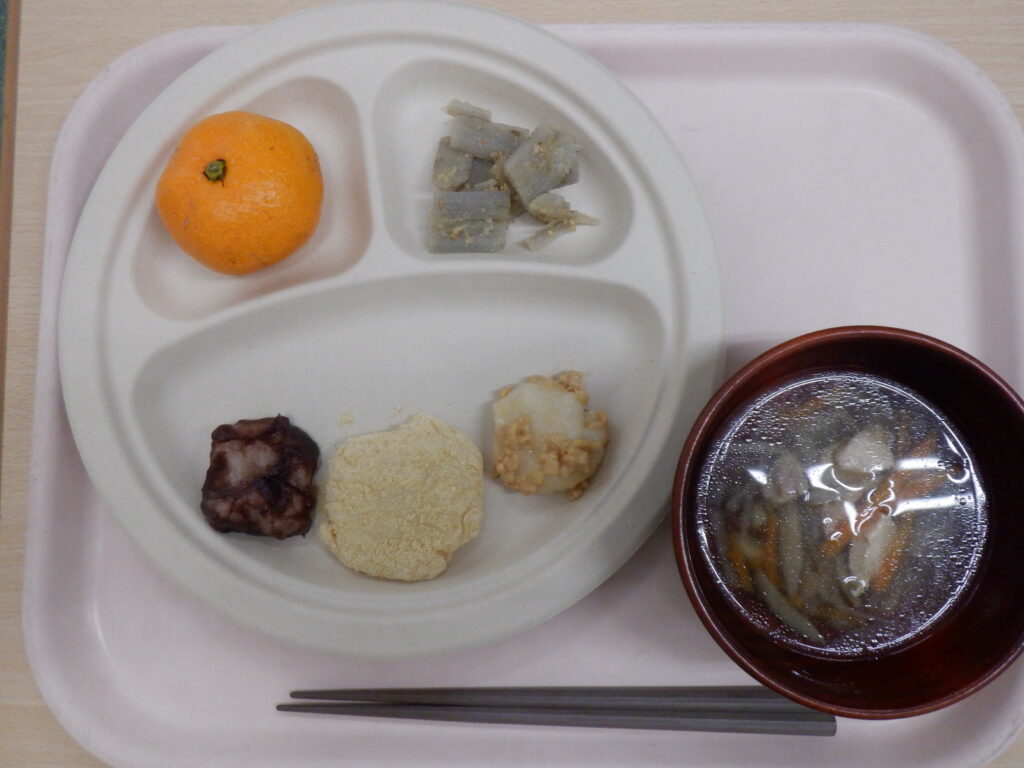 メニューは、(幼児)きなこもち・あんこもち・納豆もち(乳児)あんこおはぎ・納豆おはぎ、