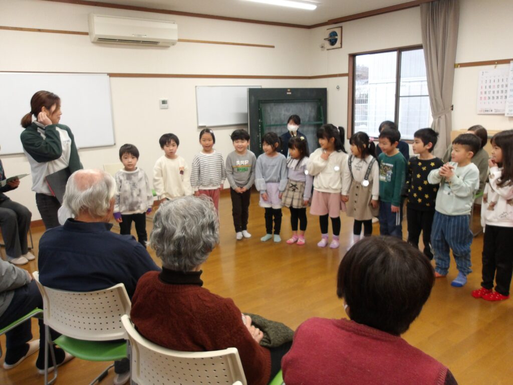 1月19日(月)年長児ひかり組のこどもたちが地域のお年寄りの方々との交流会がありました。