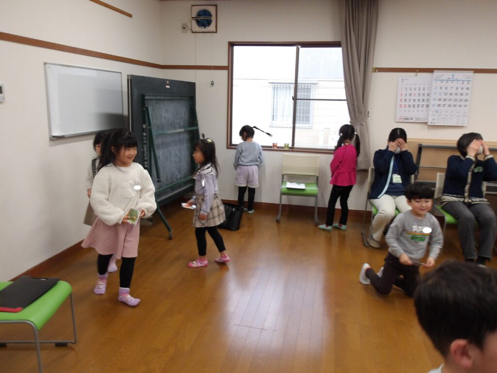 こびとビートを踊った後は、子どもたちのリクエストのこびと探し!
