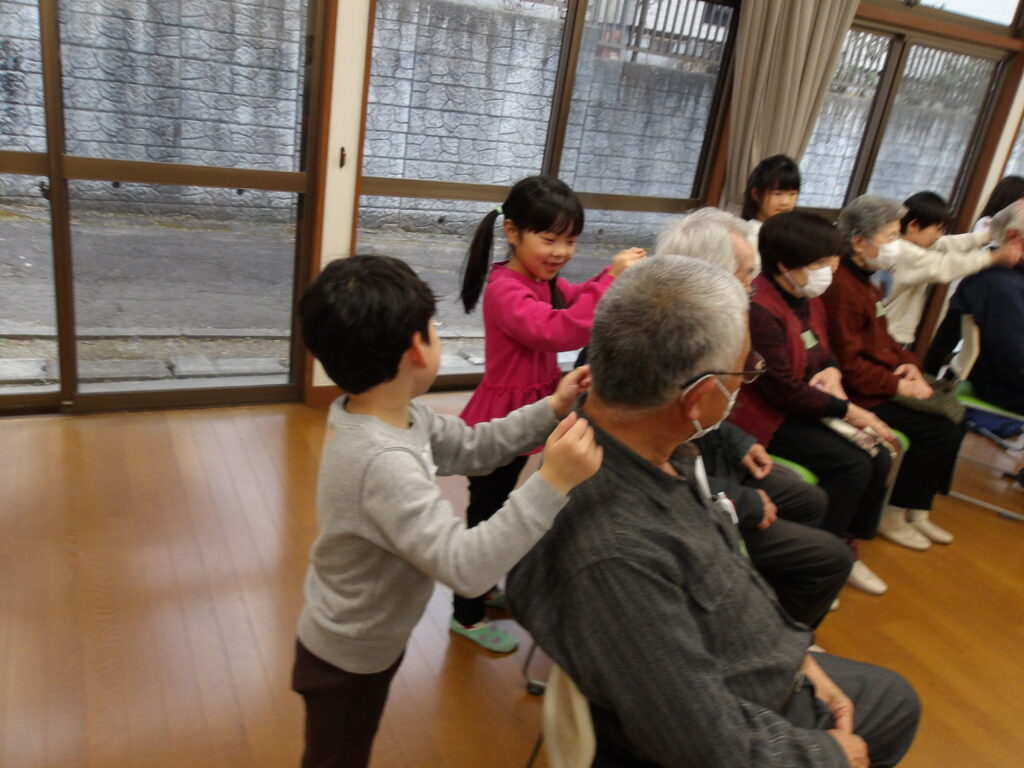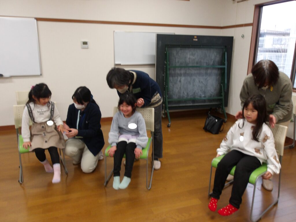 今度は反対に子どもたちが肩もみやマッサージをしてもらいました😊