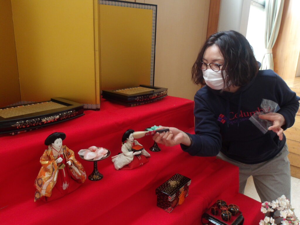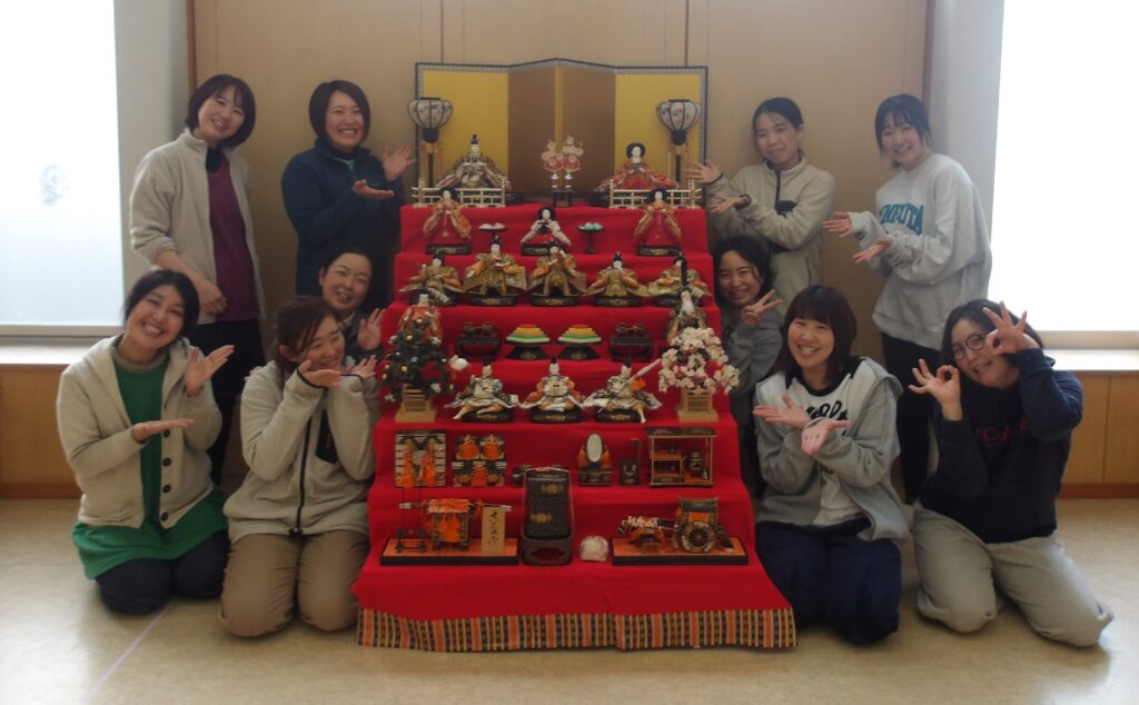 ひなまつりに向けて、職員みんなで雛人形を飾りました。