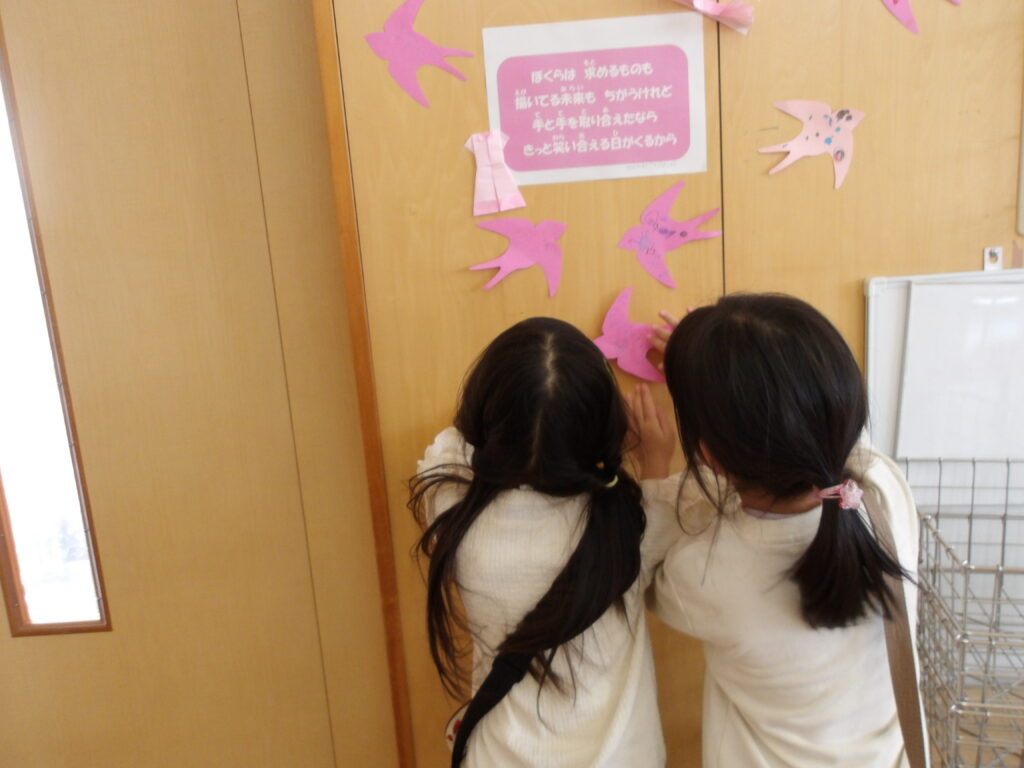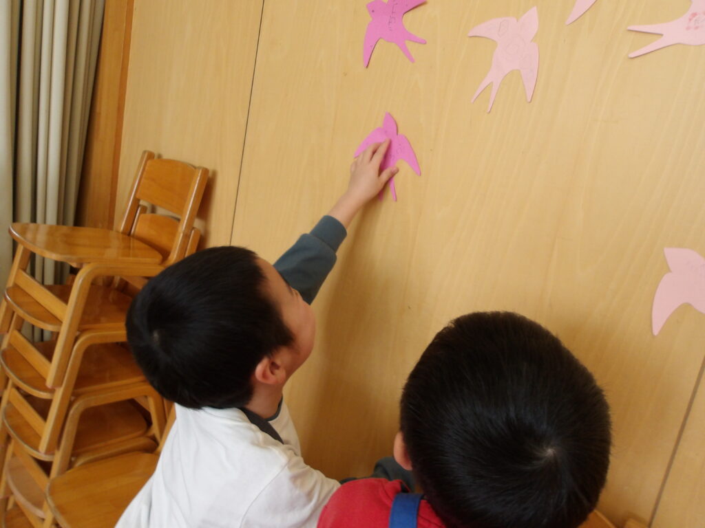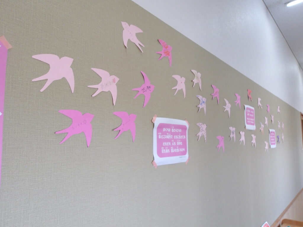 言われて嬉しい言葉をツバメのカードに書いたり、カードに絵や装飾をつけて・・・