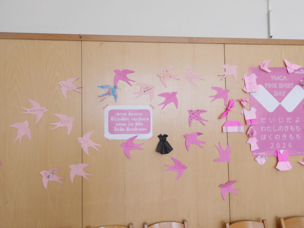 1月に幼児部の子どもたちへピンクシャツデーについてのお話しをしました。